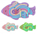 Sensorisk aktivitetsbräda – Fisk är en liten, portabel och färgglad aktivitetsleksak som bjuder in till lugn, kreativitet och taktilt utforskande. Den är tillverkad i mjukt, giftfritt och PVC-fritt silikon och kommer med färgade remsor som barn kan trä genom de olika spåren på fisken. Resultatet blir egna mönster, figurer och kombinationer – och när du är klar kan du börja om igen.