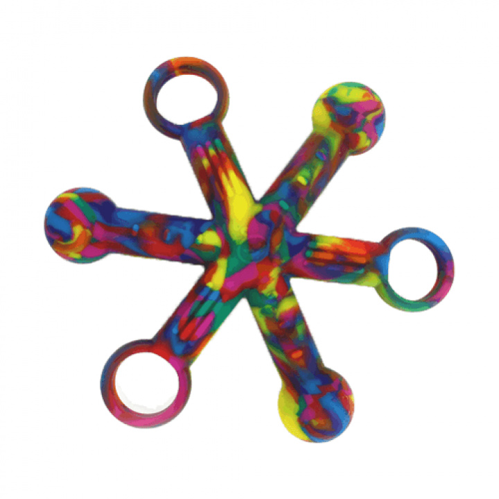 En lite större 6-armad tuggis (Ø 15 cm), tre armar med öglor och tre med bollar i ändarna. Olika taktila mönster på armarna. Greppvänlig och rolig som fidget. Flera Hexichew kan sättas ihop genom att trä en boll i en ögla. Passar för medelhårda tuggare.